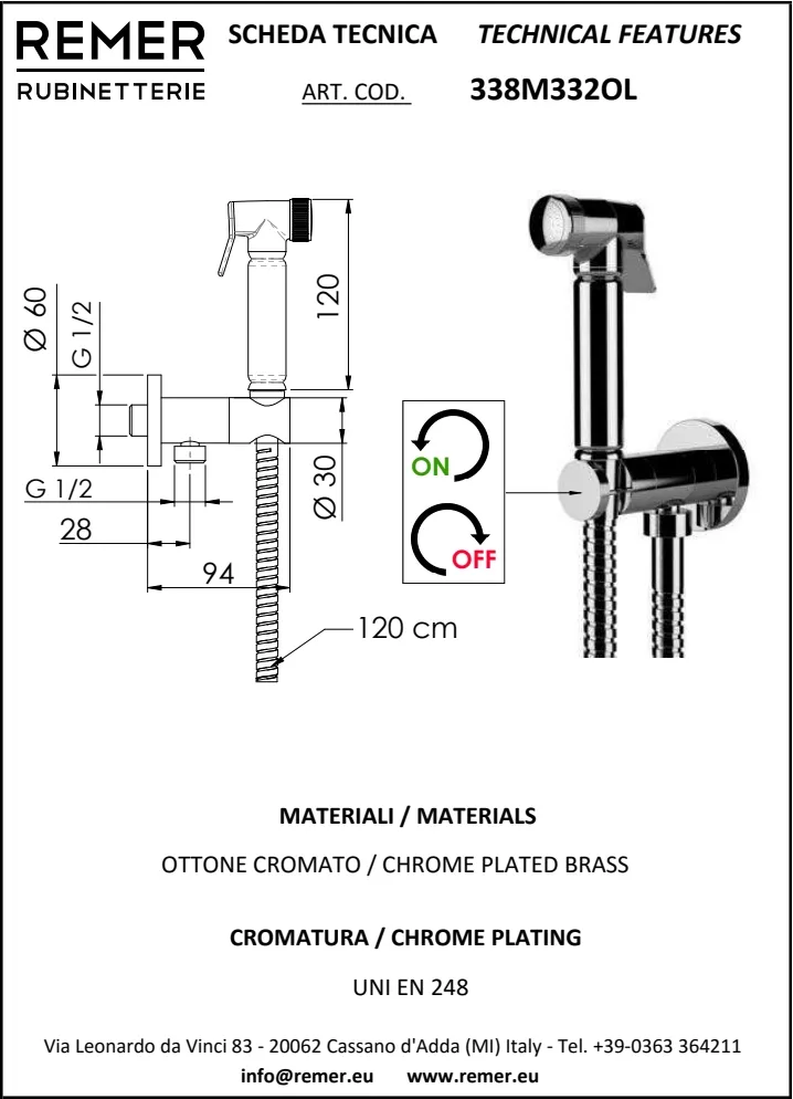 Гигиенический душ Remer с краном хром (CR) 338M332OL
