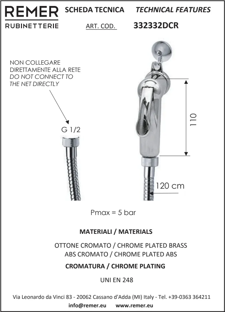 Гигиенический душ Remer с шлангом хром (CR) 332332DCR