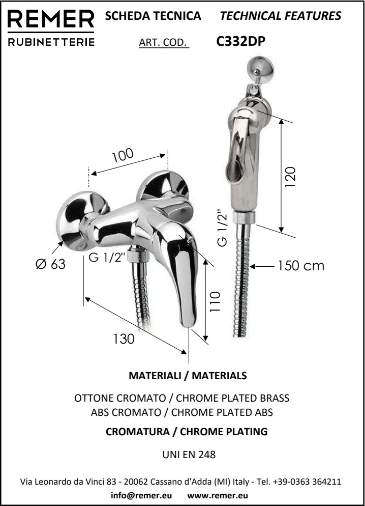 Итальянский бренд Remer Rubinetterie более 50 лет специализируется на выпуске смесителей, душевых систем и аксессуаров для ванной комнаты и кухни. Главная особенность продукции Remer — сочетание классического итальянского дизайна и современных технологий. В отличие от многих конкурентов, компания выпускает полный цикл изделий: от литейного производства латунных корпусов до хромирования и финальной сборки. Это обеспечивает стабильное качество, долговечность и оптимальную цену для европейской сантехники премиум-класса.