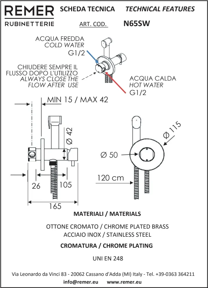 Чтобы смесители и душевые системы Remer служили десятилетиями, рекомендуется: