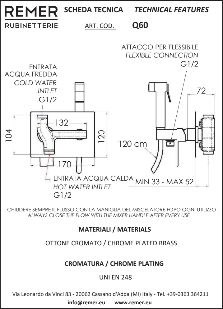Чтобы смесители и душевые системы Remer служили десятилетиями, рекомендуется: