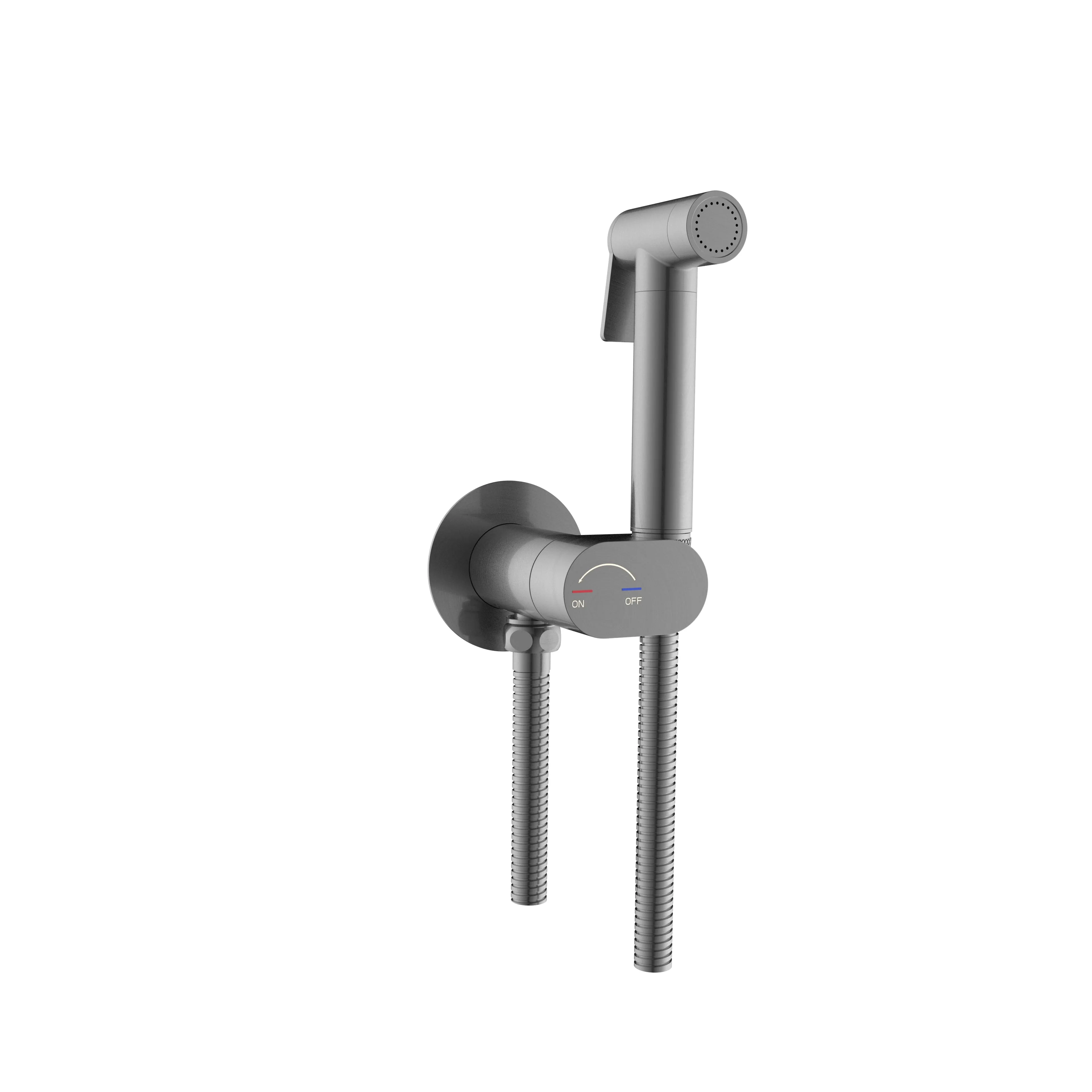 Гигиенический душ — это компактная альтернатива биде. Если у вас маленький туалет, где нет возможности установить еще одну сантехническую конструкцию, на выручку приходит данный аксессуар. Он выполнен в виде душевой лейки с клавишей (кнопкой) и шланга, которая фиксируется на смесителе. Смеситель состоит из высококачественной латуни и встраивается в стену. Устанавливается рядом с унитазом и помогает поддерживать личную гигиену.