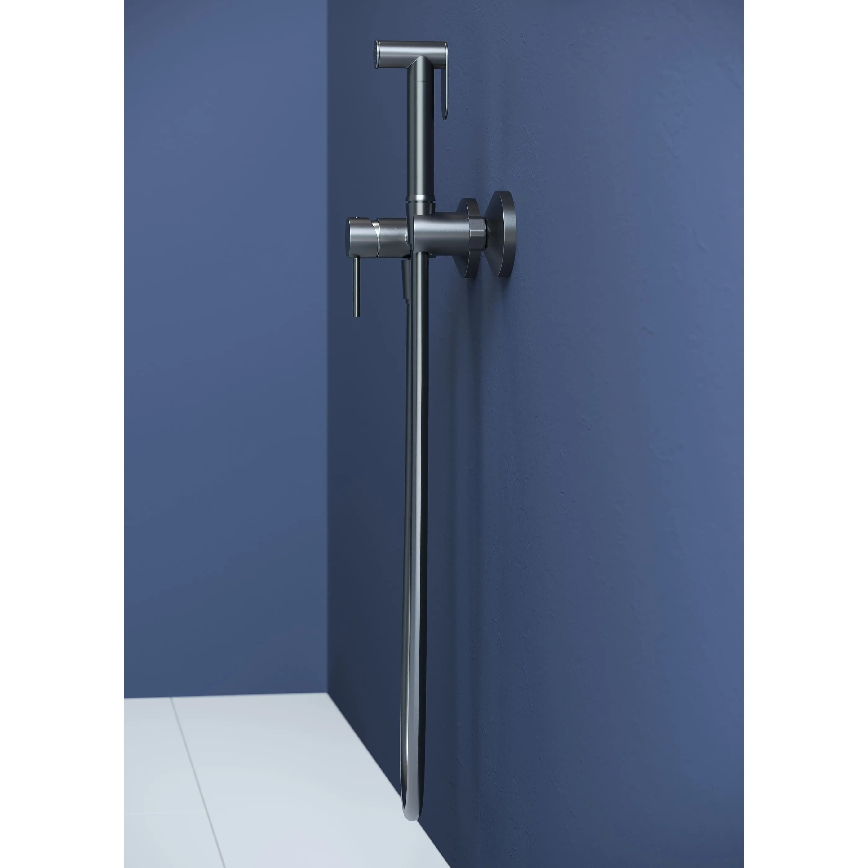 Гигиенический душ — компактная альтернатива биде. Если у вас маленький туалет, где нет возможности установить еще одну сантехническую конструкцию, на выручку приходит данный аксессуар. Он выполнен в виде душевой лейки с клавишей (кнопкой) и шланга, которая фиксируется на смесителе. Смеситель состоит из высококачественной латуни, монтируется на стену накладным способом. Устанавливается рядом с унитазом и помогает поддерживать личную гигиену.