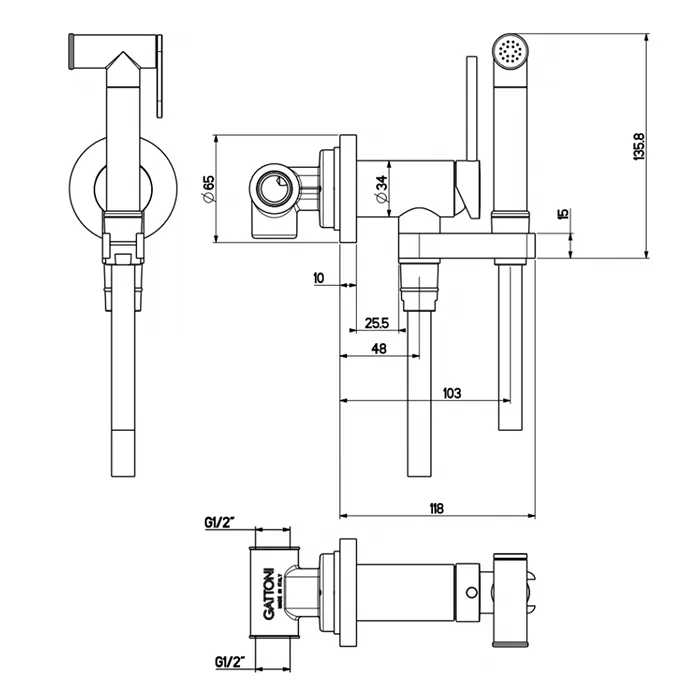 Гигиенический душ со встроенным смесителем Gattoni шланг 100, черный матовый RT010NO