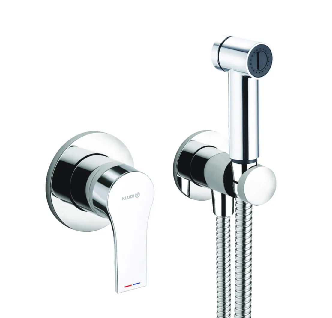 KLUDI ZENTA SL Гигиенический набор, комплект, арт. 489980565 Гигиенический набор KLUDI ZENTA SL - это уникальный продукт, который выступает в качестве готового комплекта и содержит все необходимые комплектующие. В комплект входит: встраиваемый смеситель (внутренняя часть и внешний элемент), гигиенический душ с кнопкой включения воды, душевой шланг 1250 мм, соединение для шланга с настенным