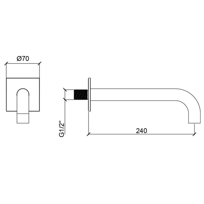 Излив настенный Almar 24 cм для ванны с квадратным отражателем, золото pvd E098011.GO