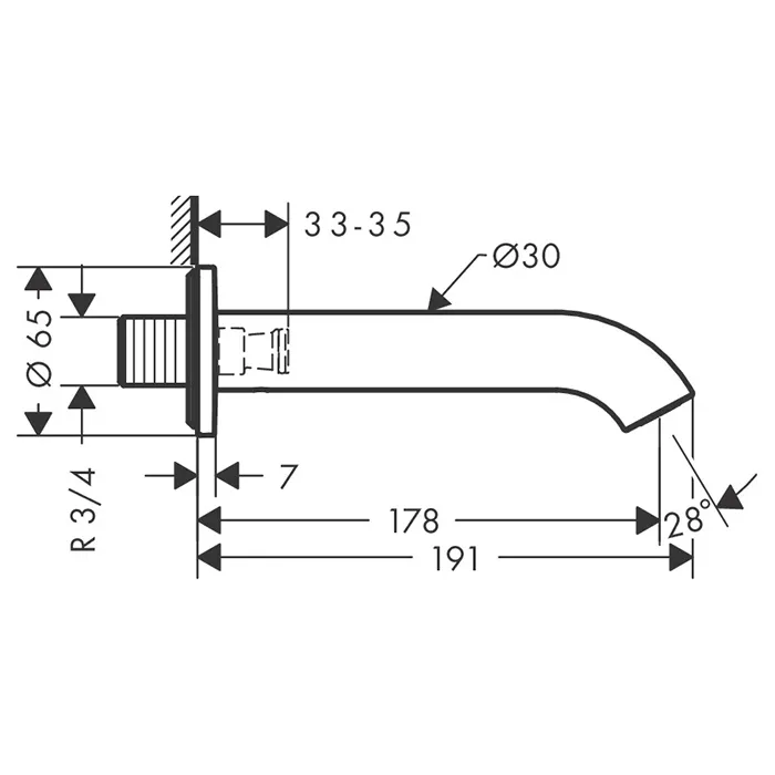 Axor Uno Излив для ванны, 17.8см, настенный, цвет: сталь 38411800