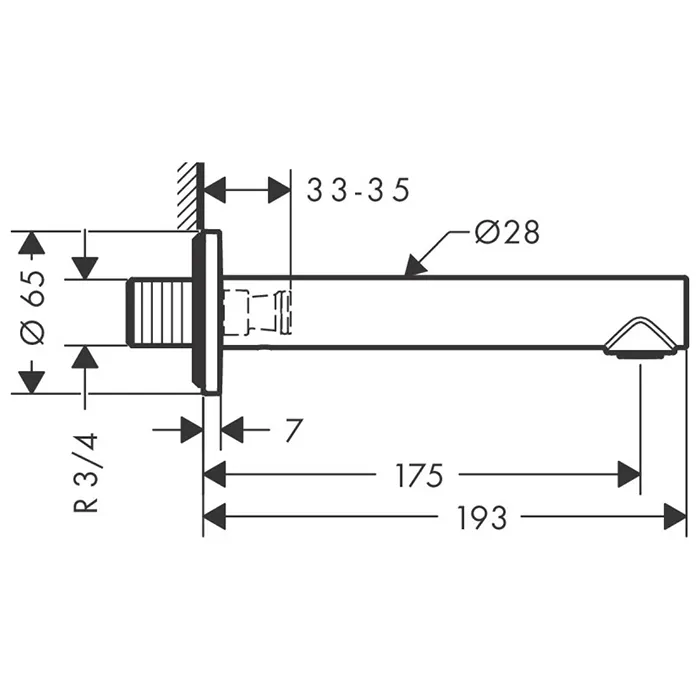 Axor Uno Излив для ванны, 175мм, настенный, ¾’, цвет: хром 45410000
