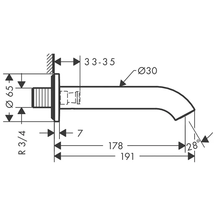 Axor Uno Излив на ванну 17.8см., настенный, цвет: черный матовый 38411670