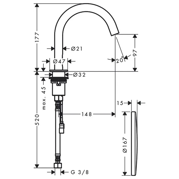 Axor Uno Смеситель для раковины 100, на 1 отв., излив: 147мм, электронный, с регулировкой температур
