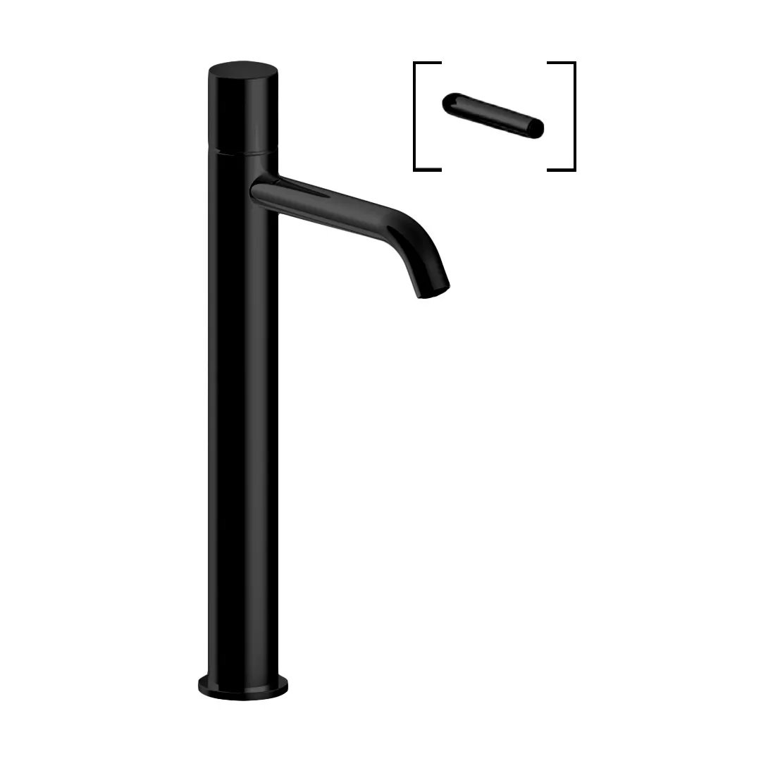 Fantini 5013G906WF NOSTROMO SMALL Смеситель для раковины на 1 отверстие, высокий излив вылет 14,5 см Ручки: ЦИЛИНДРИЧЕСКАЯ и РУЧКА-РЫЧАГ ограничитель потока воды до 5 л/мин при 3 бар подводка БЕЗ ДОННОГО КЛАПАНА - Черный матовый