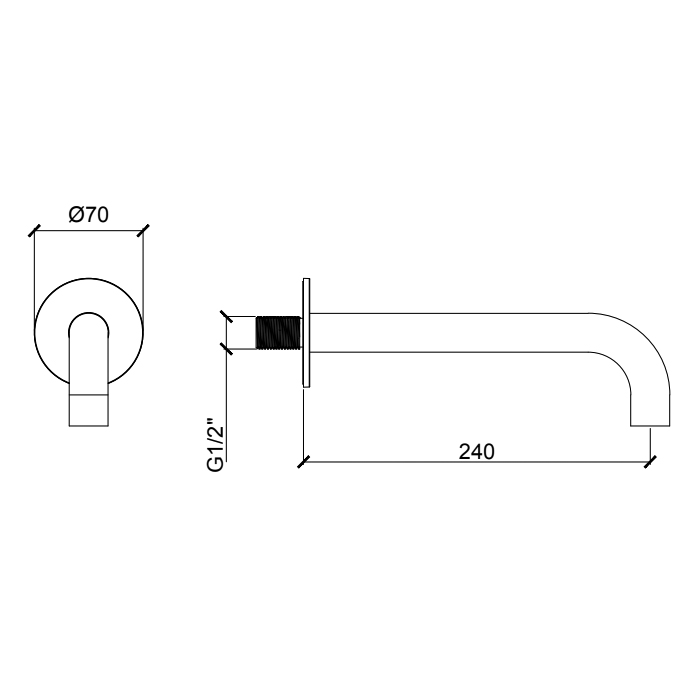 Излив настенный Almar 24 cм для ванны с круглым отражателем, черный металл брашированный pvd E098007.AB