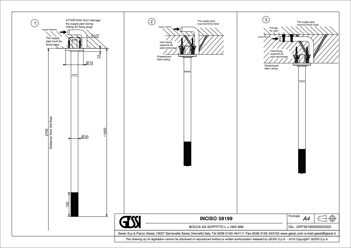 Излив потолочный Gessi Inciso 58199.299 Matte Black