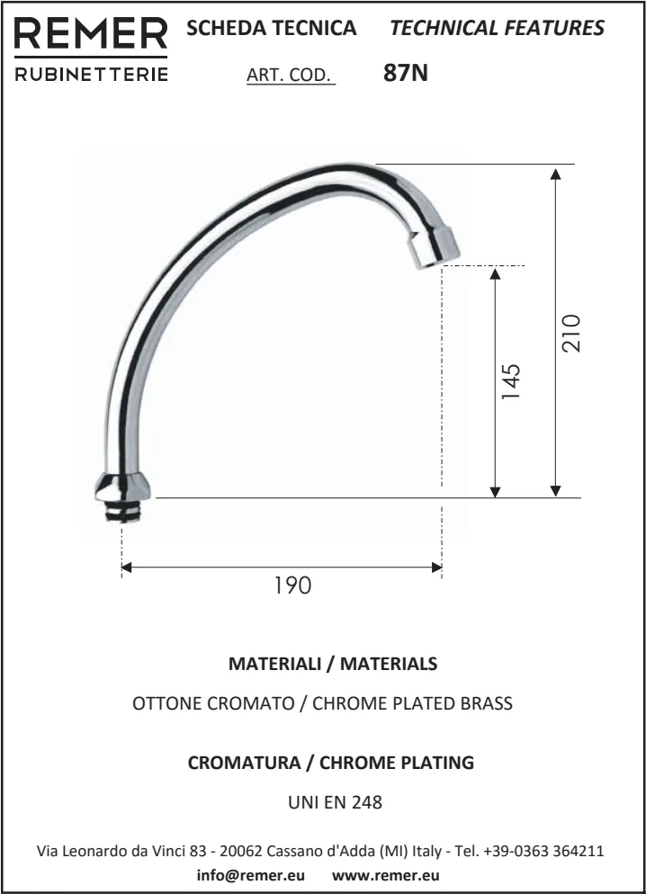 Излив поворотный Remer для кухни С-образ (для Y YG) 87N