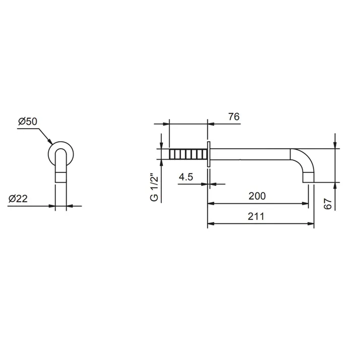 Излив смесителя для раковины Fantini Fontane Bianche настенный, Matt Gun Metal PVD 47 P5 8443