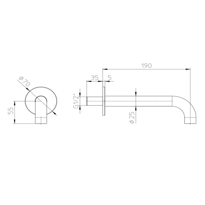 Настенный излив для ванны Bossini Nobu 25 мм. соединение 1/2”M.190 мм. цвет Mat brushed S.S.