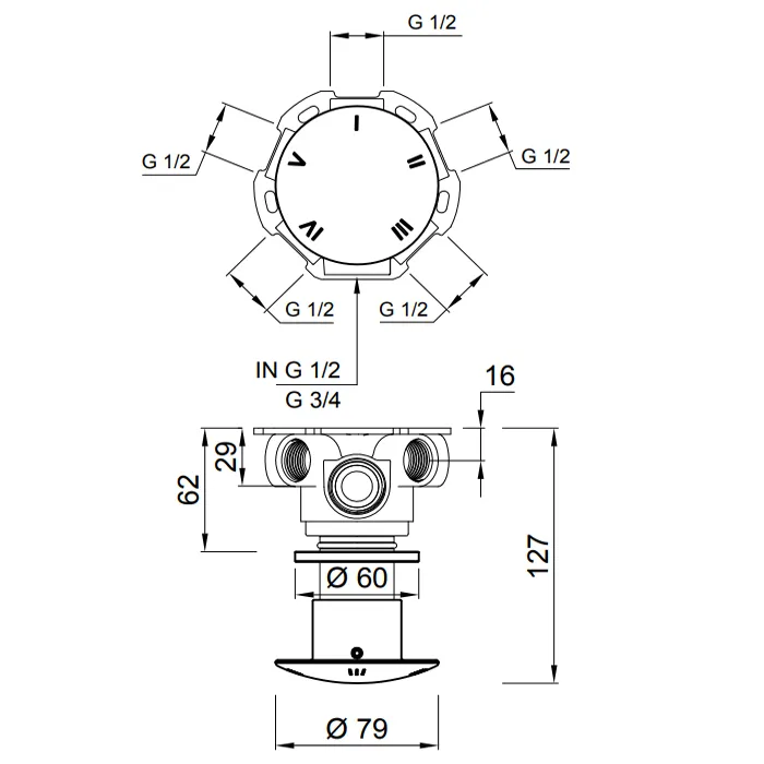 Переключатель потоков Antonio Lupi MayDay на 2, 3, 4 или 5 выходов, шлифованная сталь А0002423700