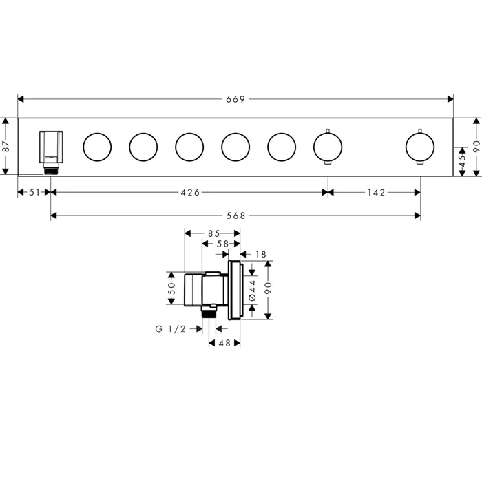 Axor ShowerSolutions Термостат Select 670/90 для 5 потребителей, внешняя часть, цвет: хром 18358000