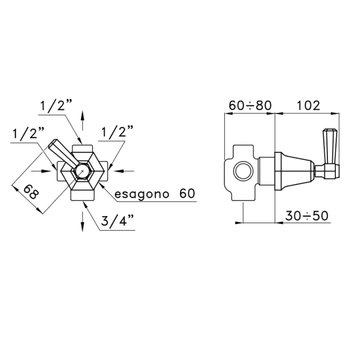Встраиваемый переключатель для ванны/душа Stella Eccelsa 0/150, хром EC 01200 CR00