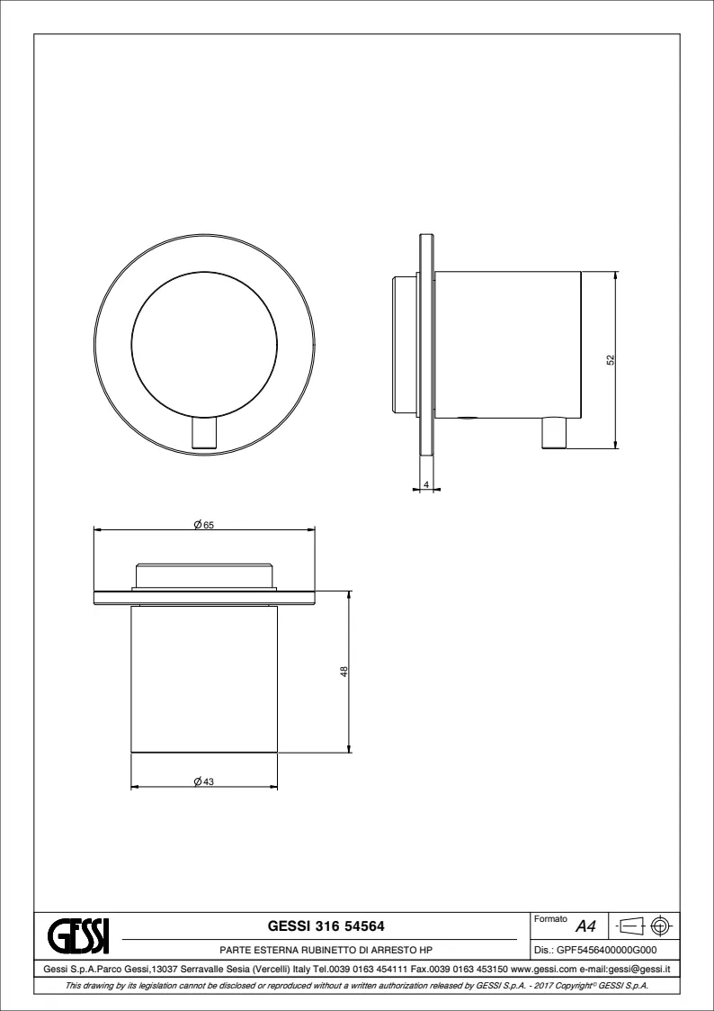 Запорный вентиль Gessi Gessi316 54564.239 Steel Brushed