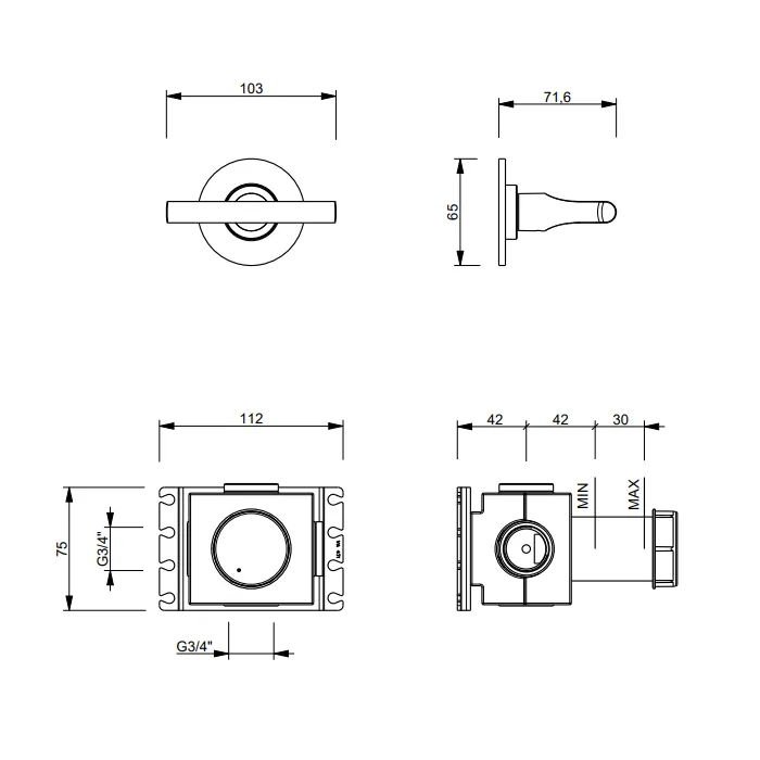 Запорный вентиль настенный встраиваемый Fantini Sailing внешняя часть, Matt Gun Metal PVD 67 P5 J291B