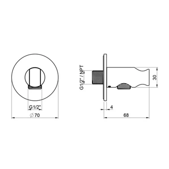 Вывод из стены с держателем для душевой лейки Almar, нержавеющая сталь брашированная aisi 316 E095032.316