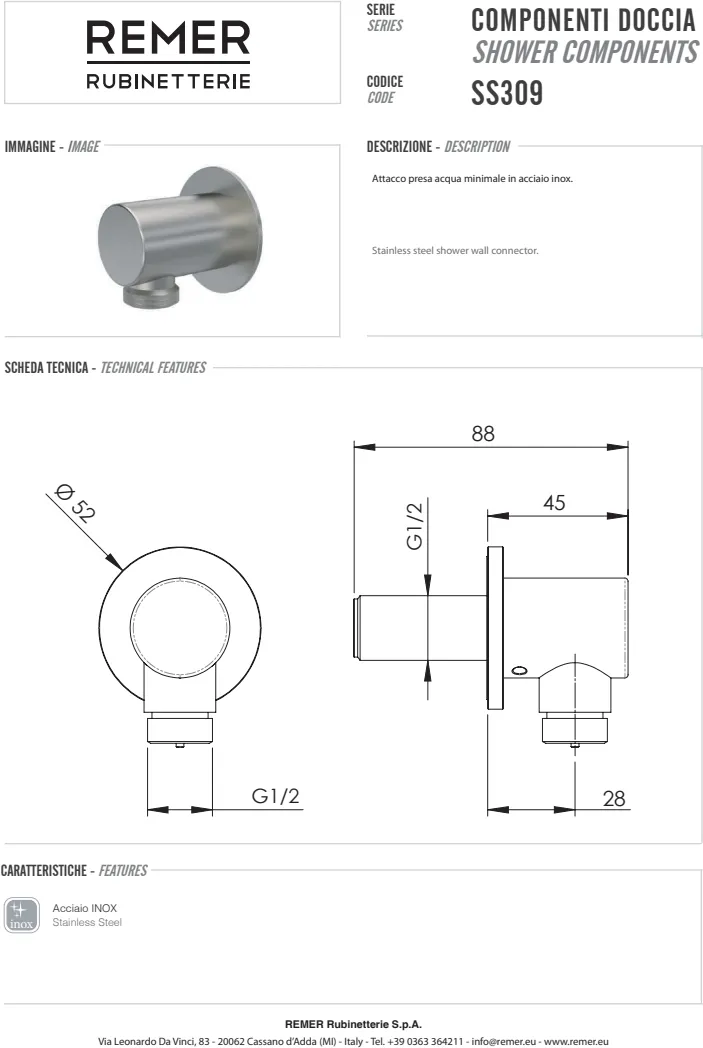 Итальянский бренд Remer Rubinetterie более 50 лет специализируется на выпуске смесителей, душевых систем и аксессуаров для ванной комнаты и кухни. Главная особенность продукции Remer — сочетание классического итальянского дизайна и современных технологий. В отличие от многих конкурентов, компания выпускает полный цикл изделий: от литейного производства латунных корпусов до хромирования и финальной сборки. Это обеспечивает стабильное качество, долговечность и оптимальную цену для европейской сантехники премиум-класса.