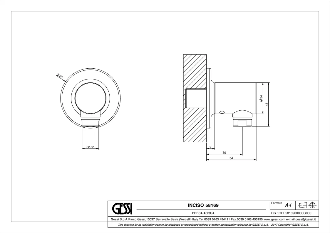 Шланговое подключение Gessi Inciso 58169.246 Gold PVD