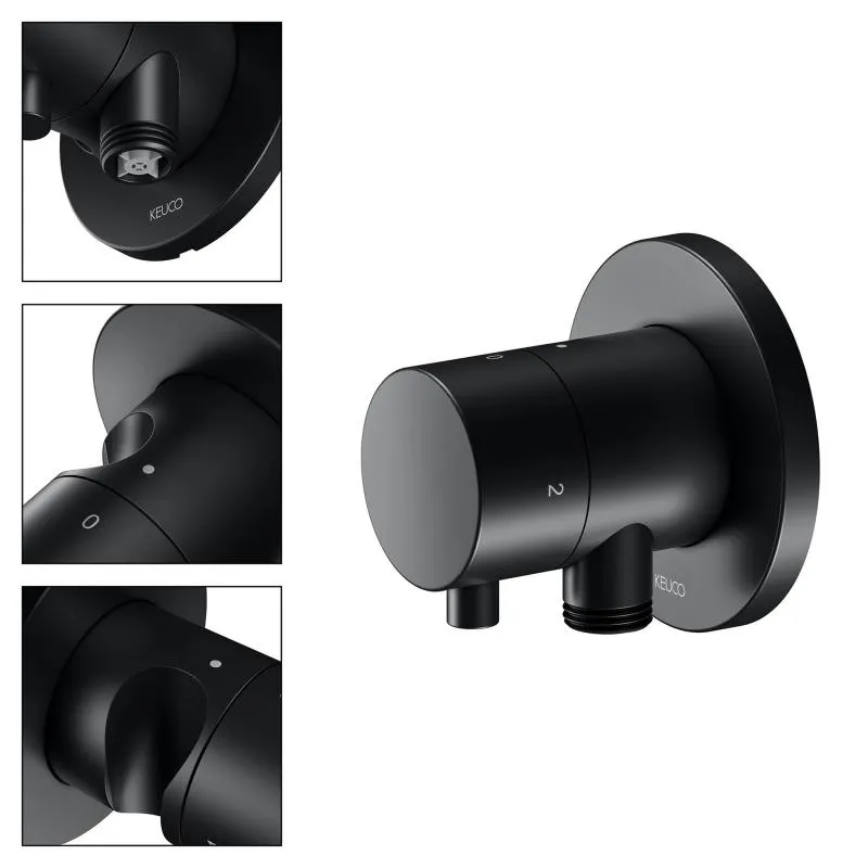 Встраиваемый переключатель на 2 потребителя с выводом для шланга и держателем лейки DN 15 Keuco IXMO, 59556371201, черный матовый