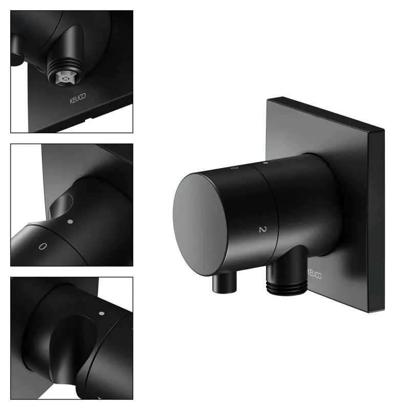 Встраиваемый запорный вентиль с переключателем на 2 потребителя, выводом для шланга и держателем лейки DN 15 Keuco IXMO, 59557371202, черный матовый