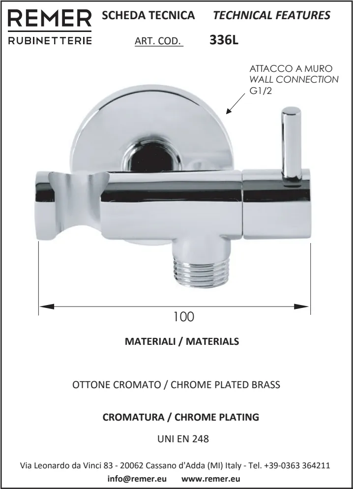 Держатель-кран Remer с подключением шланга хр.латунь 336L