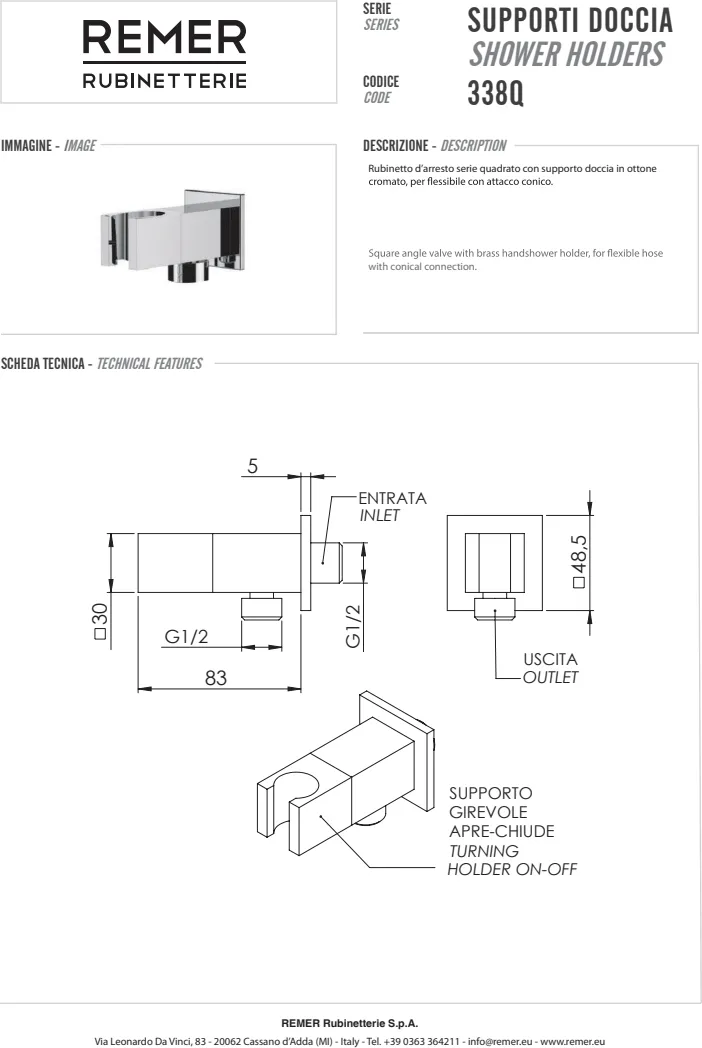 Держатель-кран Remer с подключением шланга хром (CR) 338Q