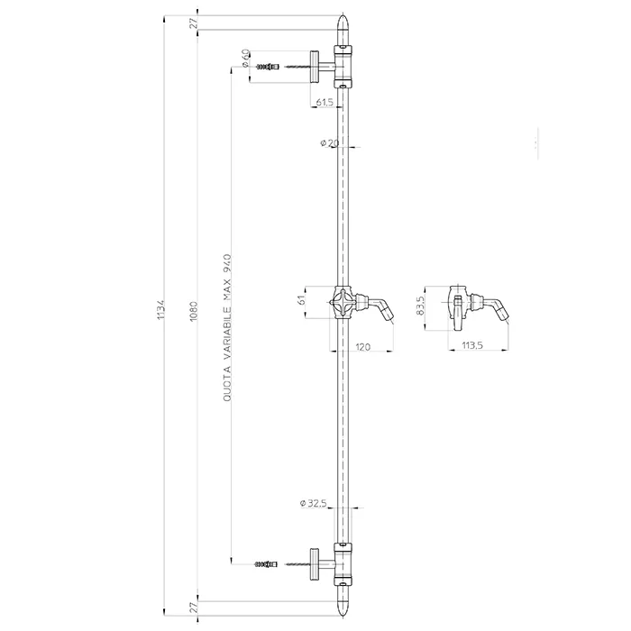 Bossini Liberty Штанга для душа, цвет: античная бронза D19000.022