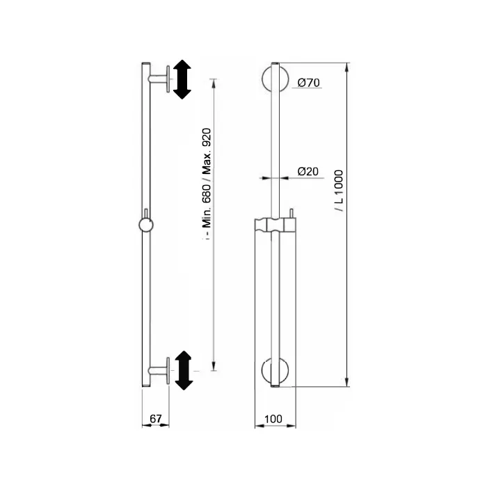 Душевая штанга Almar 100 с шлангом и ручным душем, хром E087075.CR