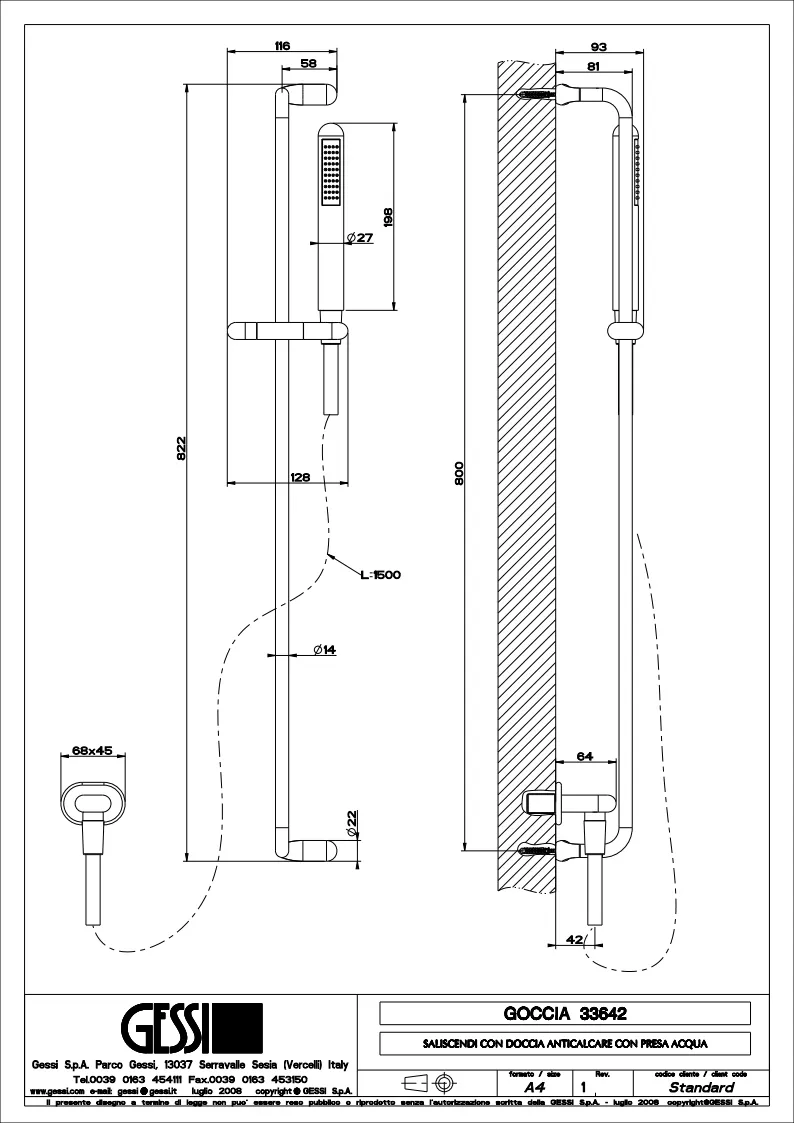 Душевая штанга Gessi Goccia 33642.299 Matte Black