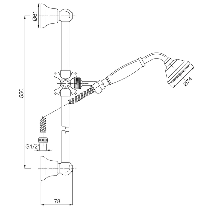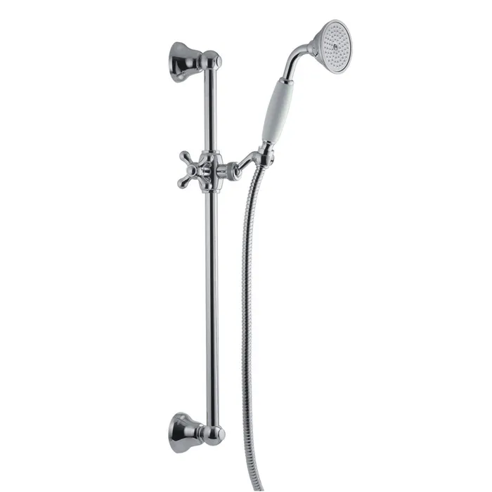 Душевая штанга с ручным душем с белой керамической ручкой и металлическим шлангом Fima Carlo Frattini Wellness 1500, хром F2044/3CR