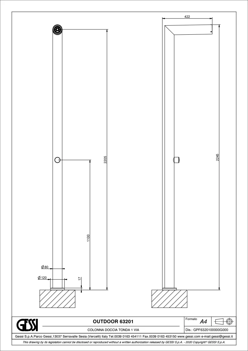 Душевая стойка Gessi Outdoor 63201.239 Steel Brushed