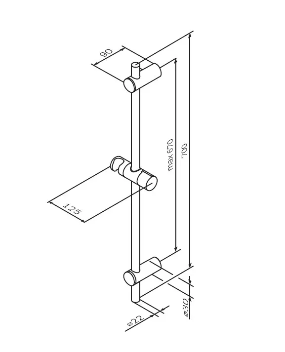 - Длина душевой штанги: 700