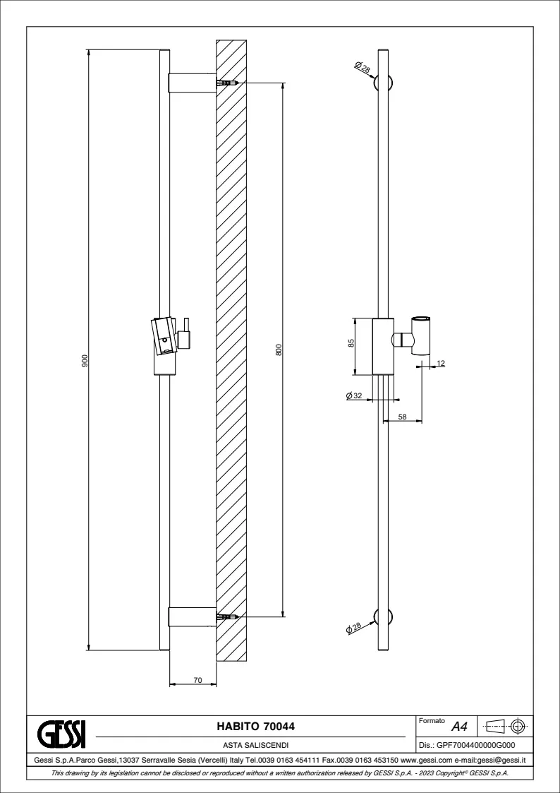Штанга для душа Gessi 70044.726 Warm Bronze Brushed PVD