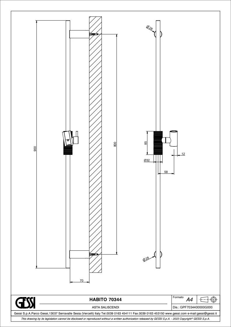 Штанга для душа Gessi 70344.707 Black Metal Brushed PVD