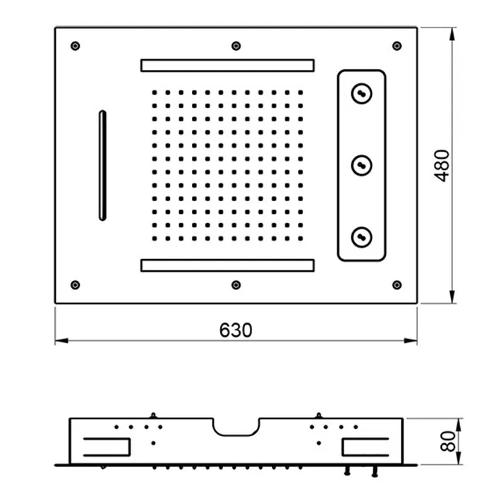 Встраиваемый верхний душ Almar 48х63, 3 типа струи, хромотерапия, черный матовый E044190.MB
