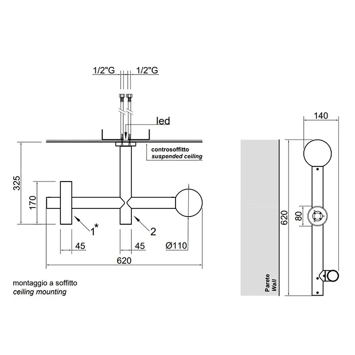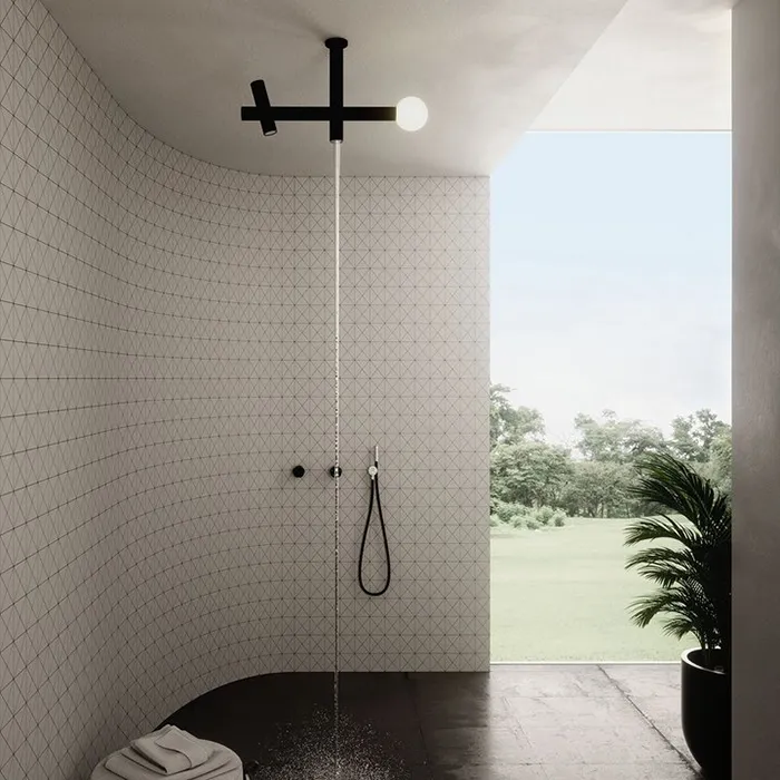 Верхний душ Antonio Lupi Apollo 45, с LED подсветкой, потолочный монтаж, с 2 изливами, черный матовый А0002462658