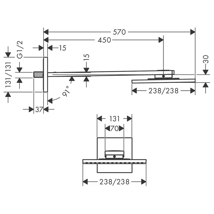 Axor ShowerSolution Верхний душ, 250x250мм, 1jet, с держателем 450мм, настенный монтаж, цвет: хром