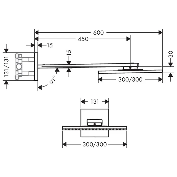 Axor ShowerSolution Верхний душ, 300x300мм, 2jet, с держателем 450мм, настенный монтаж, цвет: хром 3