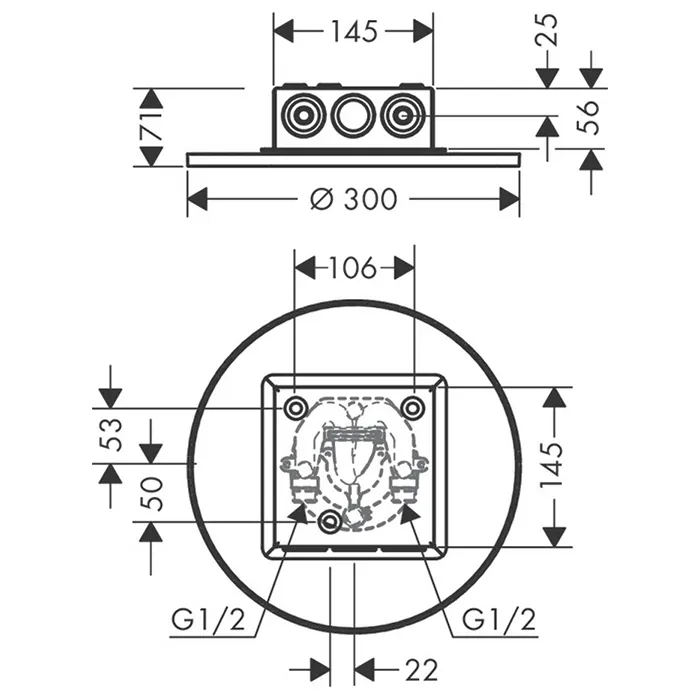 Axor ShowerSolution Верхний душ, Ø 300мм, 2jet, потолочный монтаж, цвет: хром 35305000
