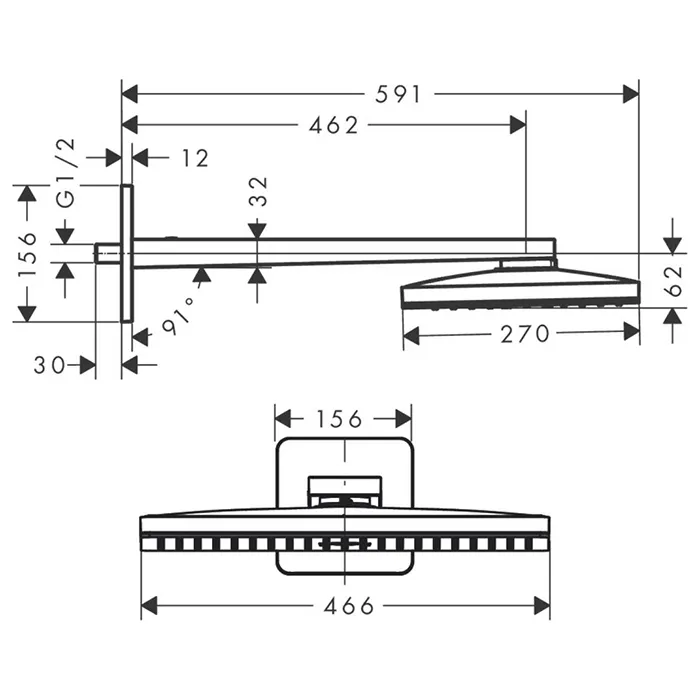 Axor ShowerSolutions Верхний душ 460 х 270мм, 1jet, с настенным держателем 460мм (скругл. края розет