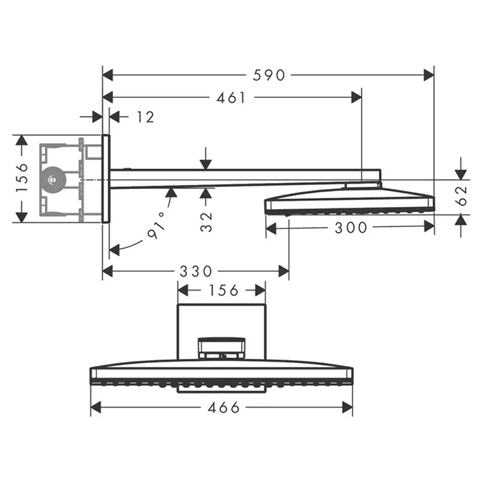Axor ShowerSolutions Верхний душ 460 х 300мм, 3jet, с настенным держателем 460мм (квадратная розетка