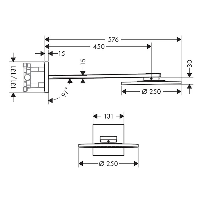 Axor ShowerSolutions Верхний душ, Ø 25см, 2jet, с держателем 45см, настенный, цвет: сталь 352