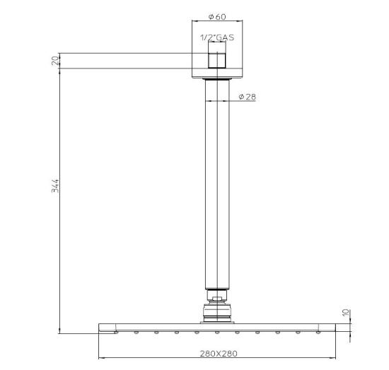 BOSSINI COSMO Верхний душ 280х280 мм., с потолочным держателем 300 мм, цвет черный матовый H30598G.0