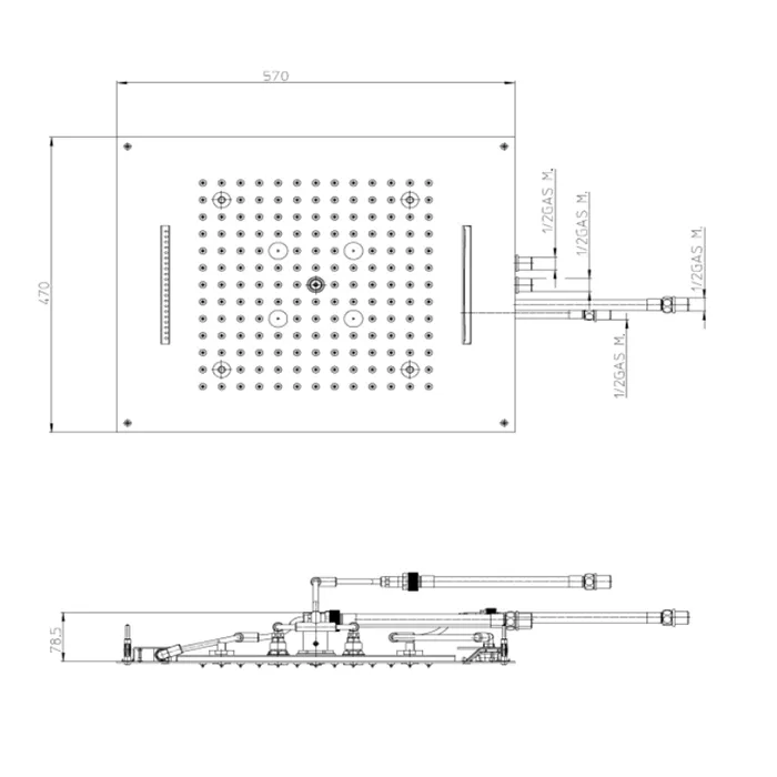 BOSSINI DREAM/4 Верхний душ 570x470 мм, с 4 LED RGB, 4 режима (дождь, каскад, водопад, туман) блок п
